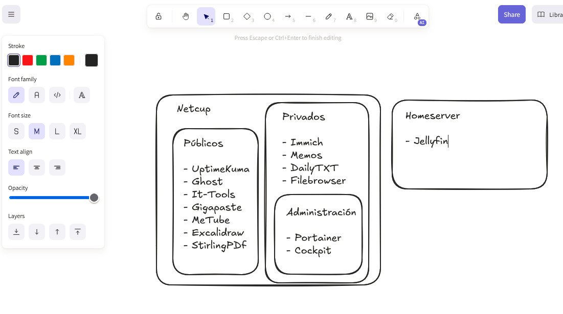Excalidraw es una pizarra infinita. Nos permite crear hermosos gráficos con un estilo de dibujo a mano para presentar a otros, para desarrollar ideas, tomar notas y muchas cosas más.