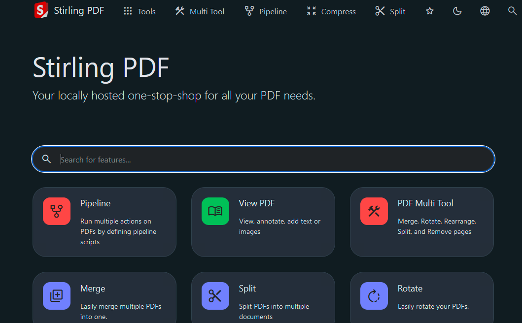 StirlingPDF es una multi-herramienta para trabajar con archivos PDF. Nos permitirá visualizar PDFs, firmarmlos, unir distintos PDFs en uno, seperar un PDF en varios, editarlos de distintas formas y mucho más.